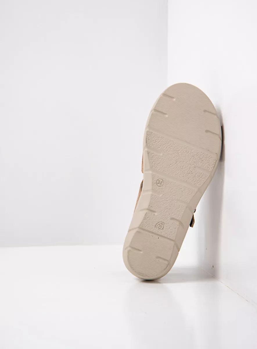 Retro look sandal with fixed footbed